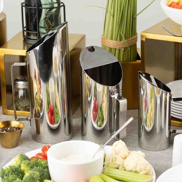 Elevate your beverage service with our professional-grade stainless steel pitchers, designed with built-in ice guards for smooth, splash-free pouring every time. Available in three convenient capacities, each pitcher features an extended handle for comfort and control. Combining lasting durability with sleek, polished style, these pitchers are perfect for restaurants, catering, banquets, or any event where presentation matters. Make every pour easy, clean, and professional.