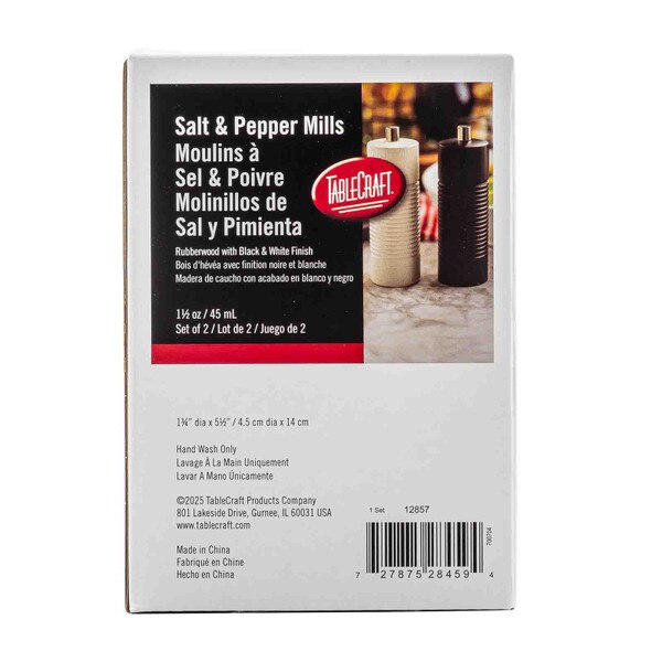 Bring warmth and elegance to your tabletop with our 1.5 oz salt & pepper mills, crafted from painted rubberwood in classic black and white finishes. These compact mills combine natural beauty with everyday function, while the adjustable grinding mechanism delivers the perfect consistency every time. Durable, stylish, and versatile, they’re perfect for restaurants, catering, or home dining.