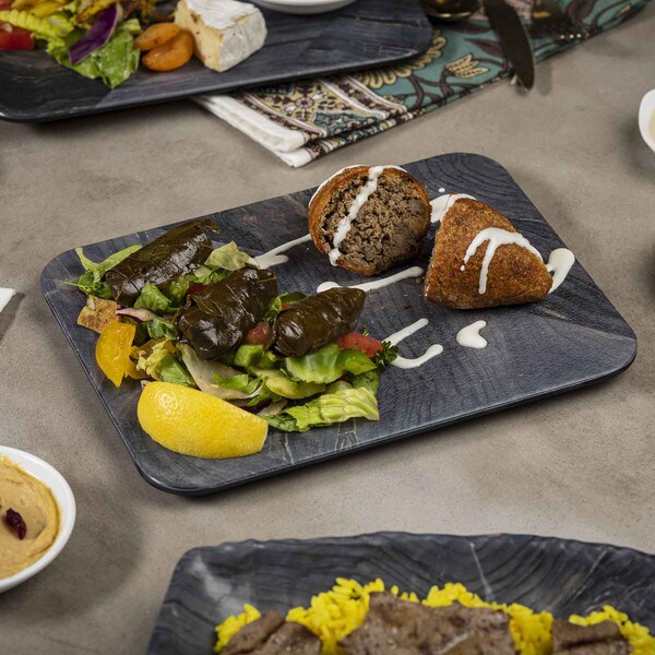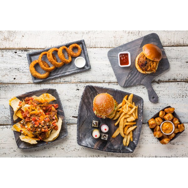 Enhance your casual dining experience with our melamine buffet and serving collection with exclusive "barnwood" pattern. Ideal for rustic buffets, farm-to-table restaurants or pool side meals, this serving tray can serve charcuterie, entrees or as a display piece.