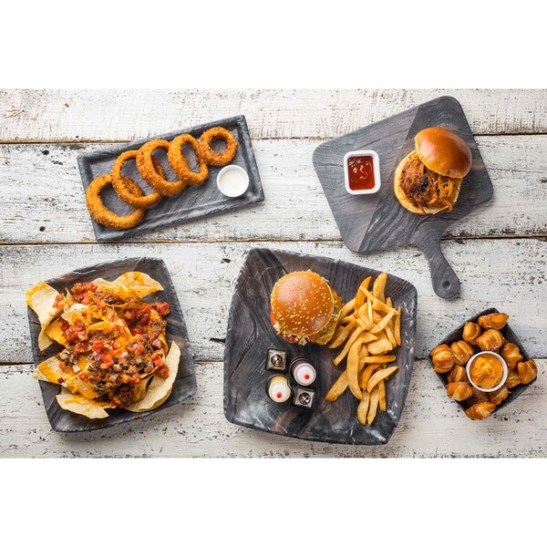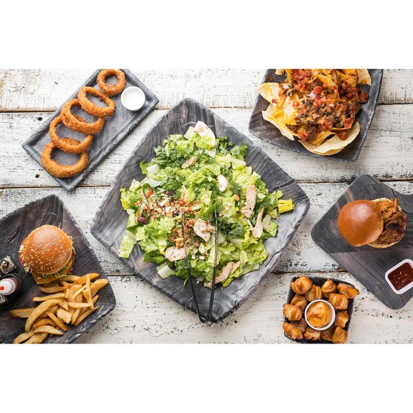 Enhance your casual dining experience with our melamine buffet and serving collection with exclusive "barnwood" pattern. Ideal for rustic buffets, farm-to-table restaurants or pool side meals, this Square Serving Tray can be used for buffet serving, entrees and as a centerpiece.