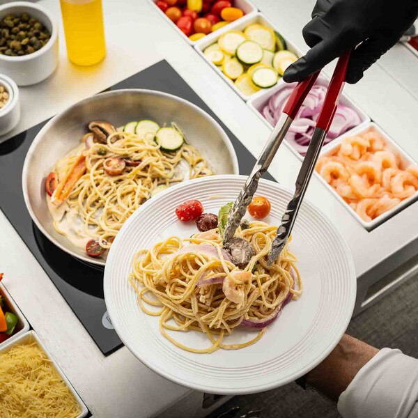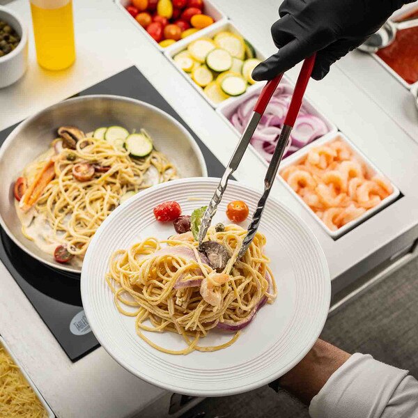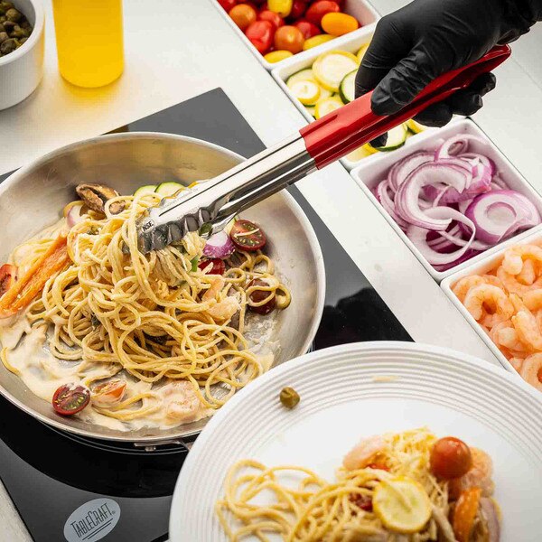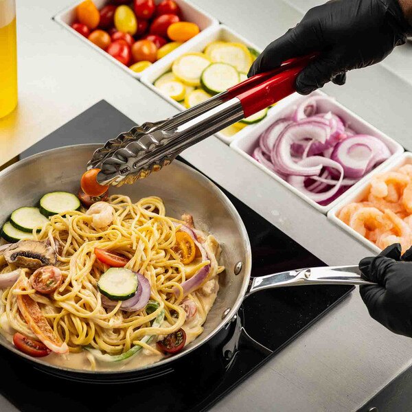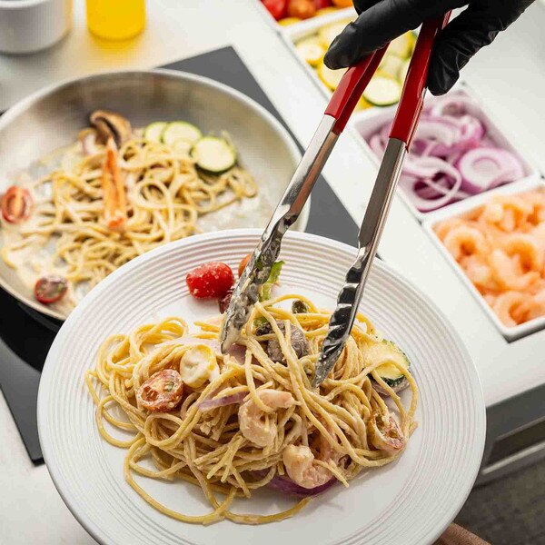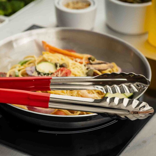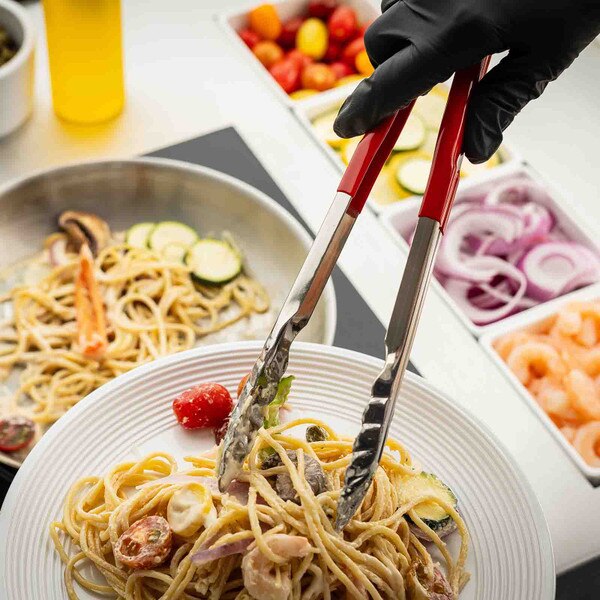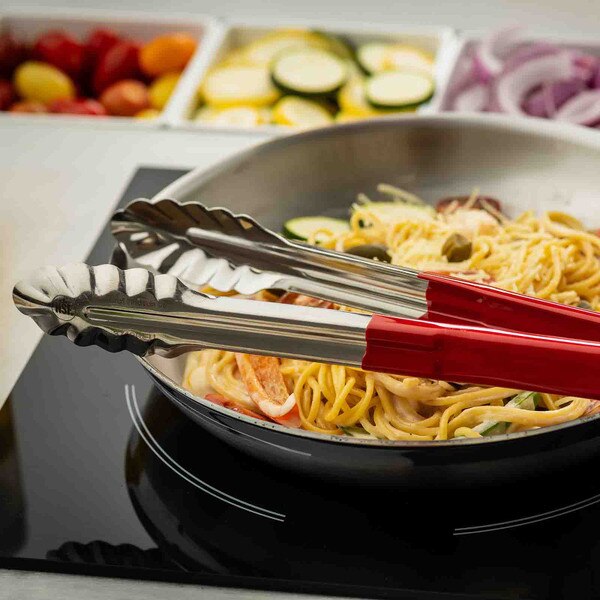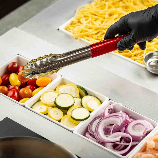 Engineered for performance, our Professional V-Hinge Tongs feature a unique, heavy-spring steel hinge design that delivers superior grip, precise control, and long-lasting memory. Color-coded handles support HACCP compliance by helping prevent cross-contamination, while the durable vinyl coating provides a comfortable, non-slip grip and enhanced food safety. A proven TableCraft best seller, these tongs are a trusted essential in busy kitchens—combining durability, safety, and reliability in every use.
