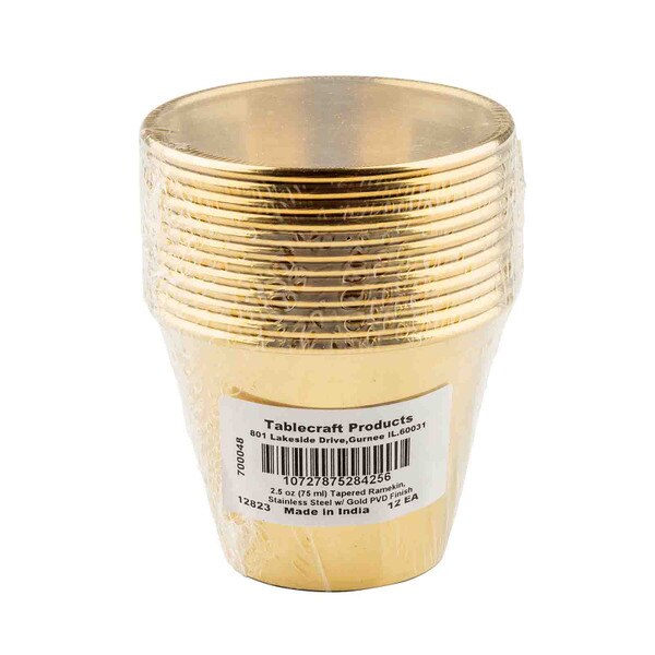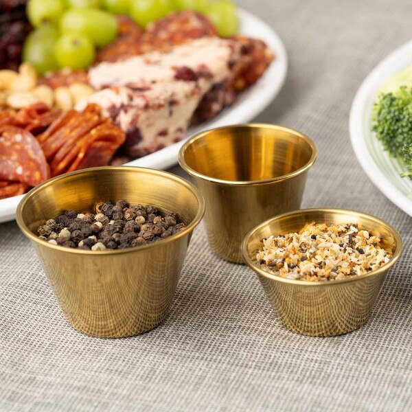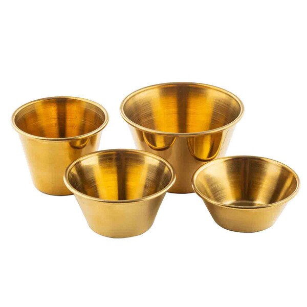 Sleek and functional, our compact Sauce Cup is the perfect solution for serving condiments, sauces, dressings, dips, and small sides with style. The gold PVD finish adds a touch of sophistication to any table or tray service. Durable and dishwasher safe, this versatile, tapered cup is a must-have for restaurants, catering operations, and fast-paced foodservice environments.