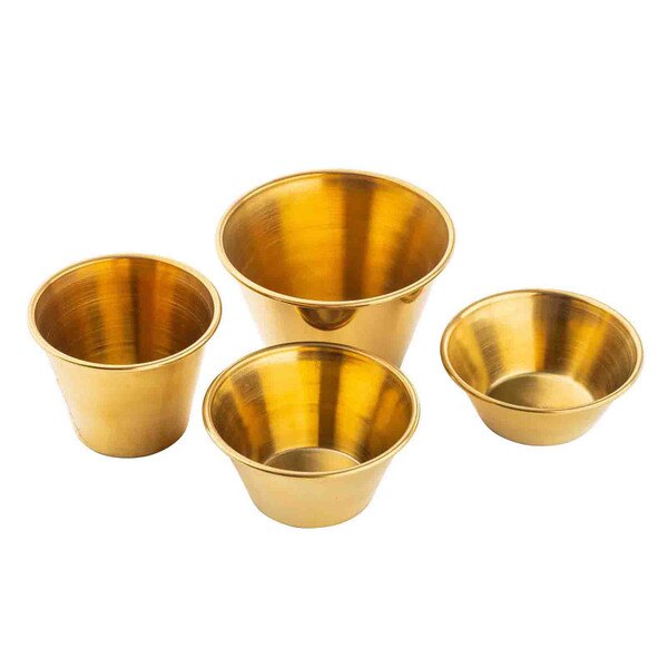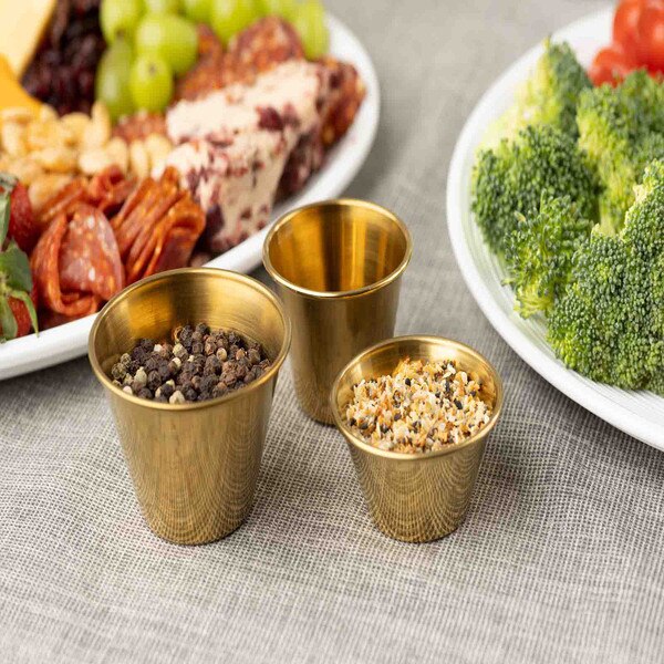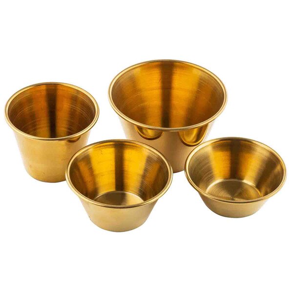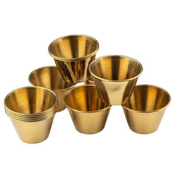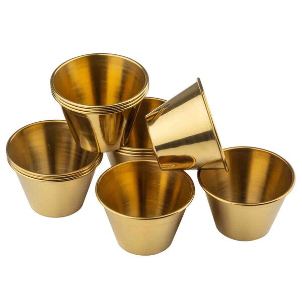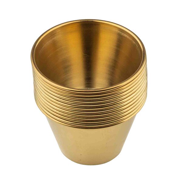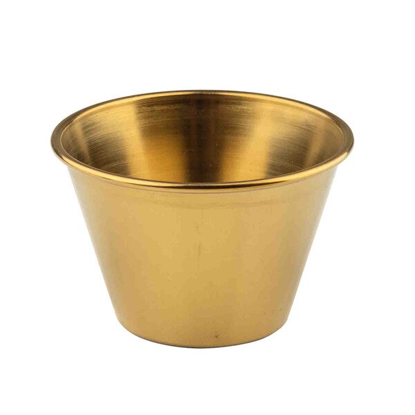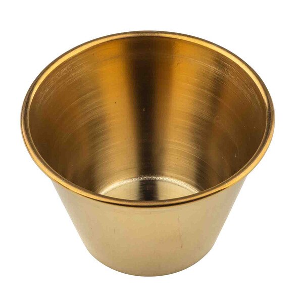 Sleek and functional, our metal Sauce Cup is the perfect solution for serving condiments, sauces, dressings, dips, and small sides with style. The gold PVD finish adds a touch of sophistication to any table or tray service. Durable and dishwasher safe, this versatile, tapered cup is a must-have for restaurants, catering operations, and fast-paced foodservice environments.