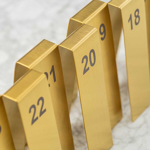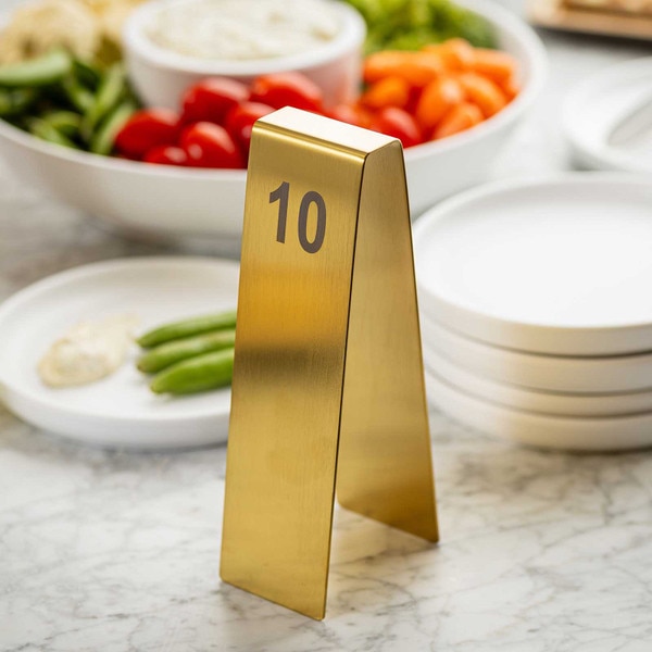 Designed to suit any foodservice setting, these 6" Number Tents (1-25) provide clear visibility for guests and staff while adding a polished touch to your presentation. Ideal for marking reserved tables, identifying buffet stations, organizing pickup orders, or numbering tables at banquets, catered events, and weddings. A versatile solution for both front- and back-of-house organization.